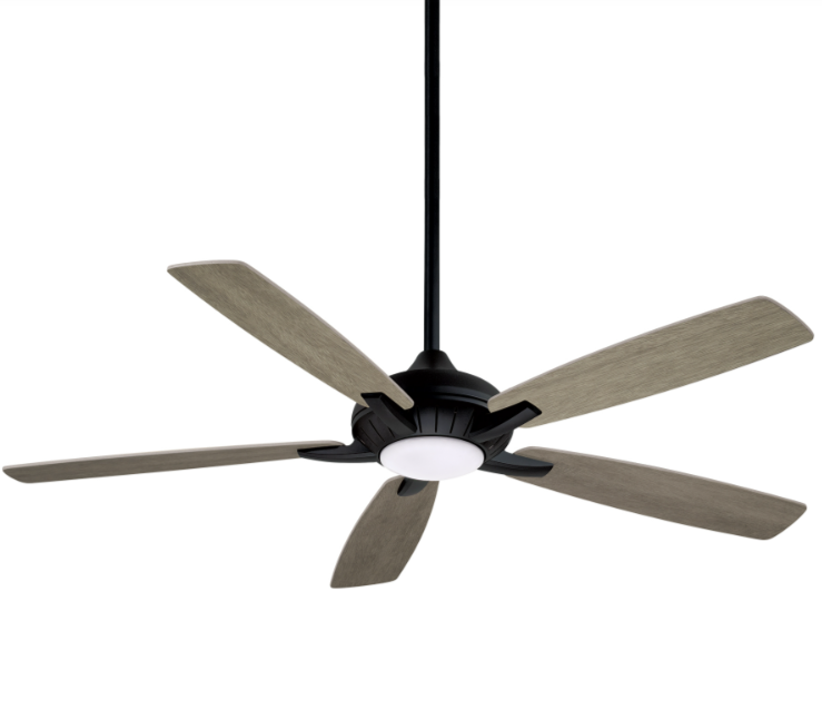 - 60″ 5-Blade LED Ceiling Fan in a Coal Finish with Seashore Grey Blades with White Lens